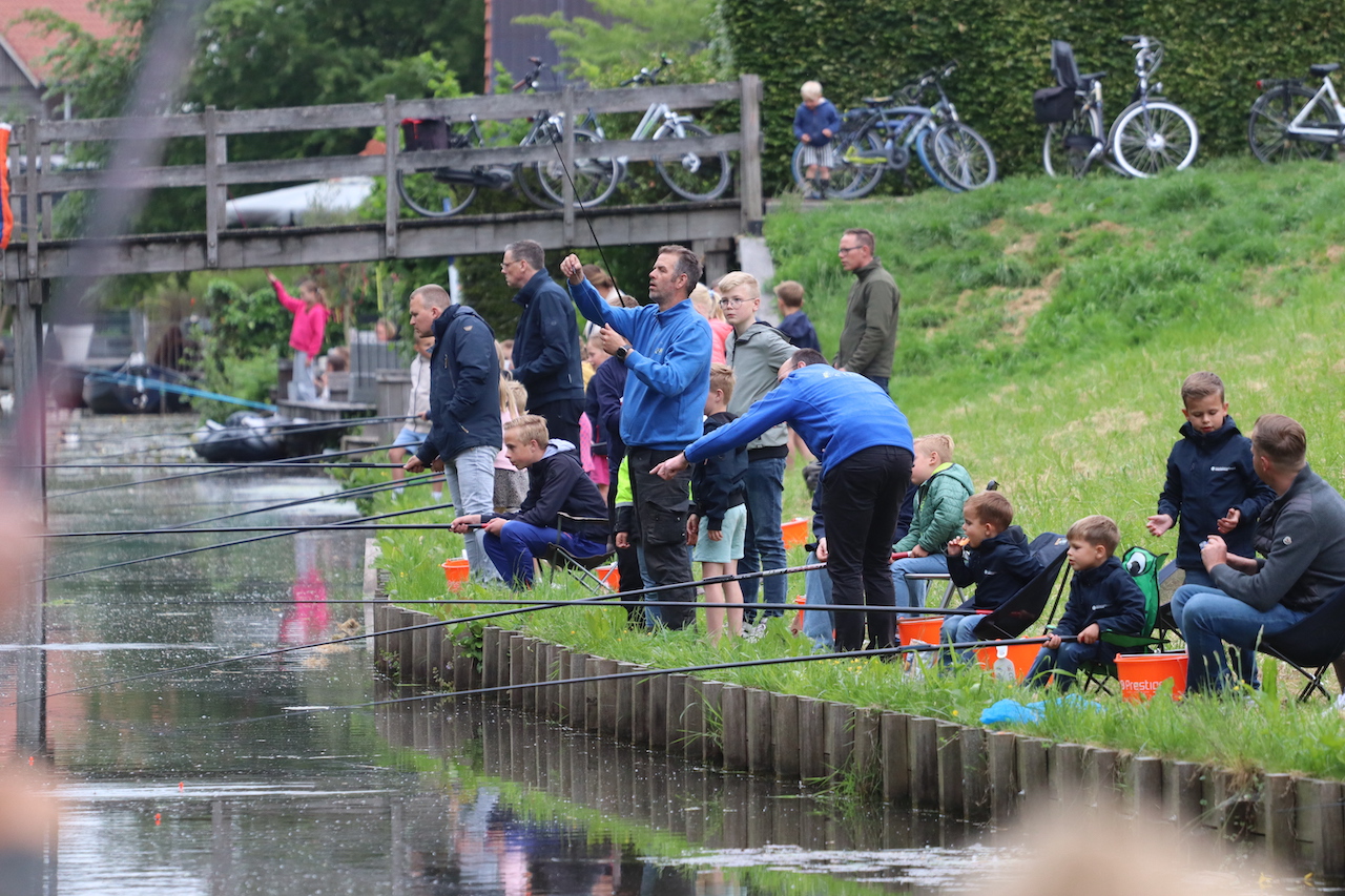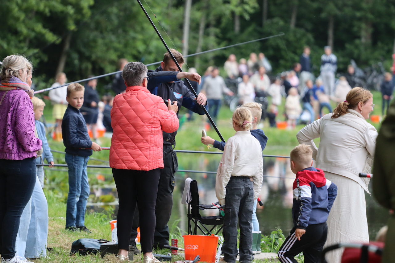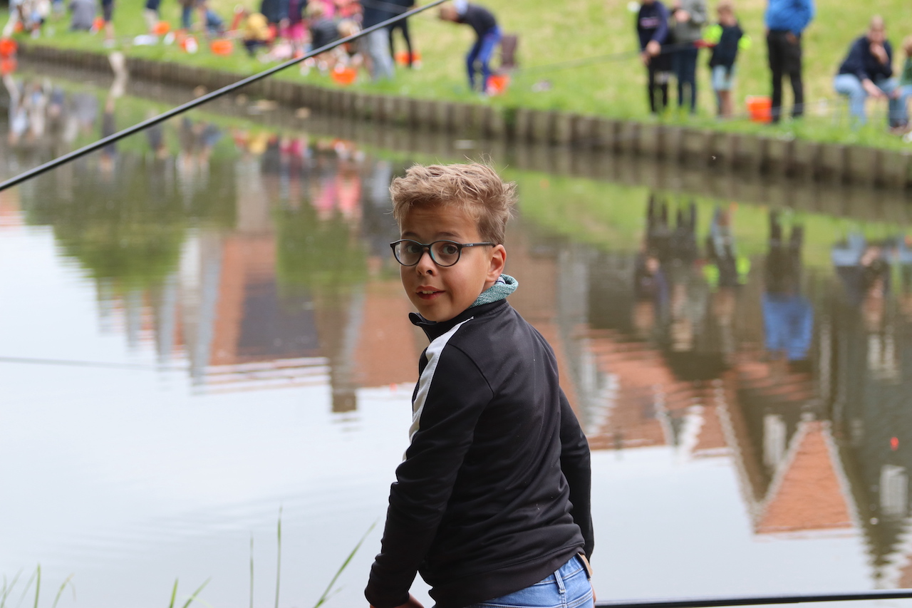 De Bermsloot lag zelden zo vol met dobbers als tijdens de feestelijke viswedstrijd voor basisschoolkinderen, georganiseerd in het kader van 750 jaar stadsrechten. Zo’n 200 kinderen namen deel aan het hengelfestijn, waarbij de liefde voor de hengelsport hand in hand ging met patat, frikandellen en veel gezelligheid.